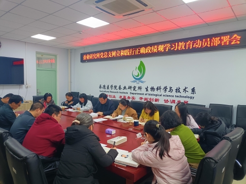 为开展树立和践行正确政绩观学习教育,传达中央、省委和学校党委有关会议精神,按照《中共承德医学院委员会关于开展树立和践行正确政绩观学习教育的工作实施方案》要求,2025年3月13日,蚕业研究所党总支在科研楼230会议室组织召开树立和践行正确政绩观学习教育动员部署会议。全体党员参加本次会议,会议由所党总支书记李静主持。 会议现场 李静传达了学校开展树立和践行正确政绩观学习教育启动会议的精神,并根据学校会议精神,对蚕业研究所扎实开展学习教育进行动员部署。李静在动员讲话中指出:一是提高政治站位,深刻认识开展学习教育的重大意义。二是把握核心要求,推动学习教育走深走实,要聚焦主题主线,坚持学查改一体推进。三是坚持学习教育与中心工作、业务工作深度融合,确保学习教育取得实效。